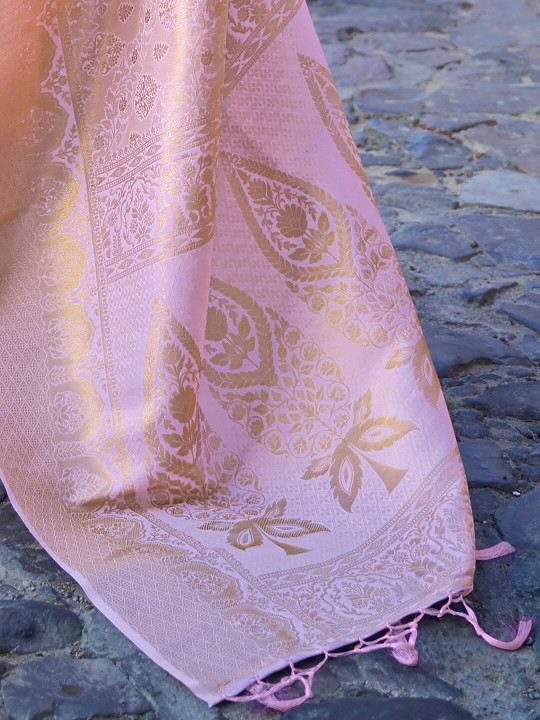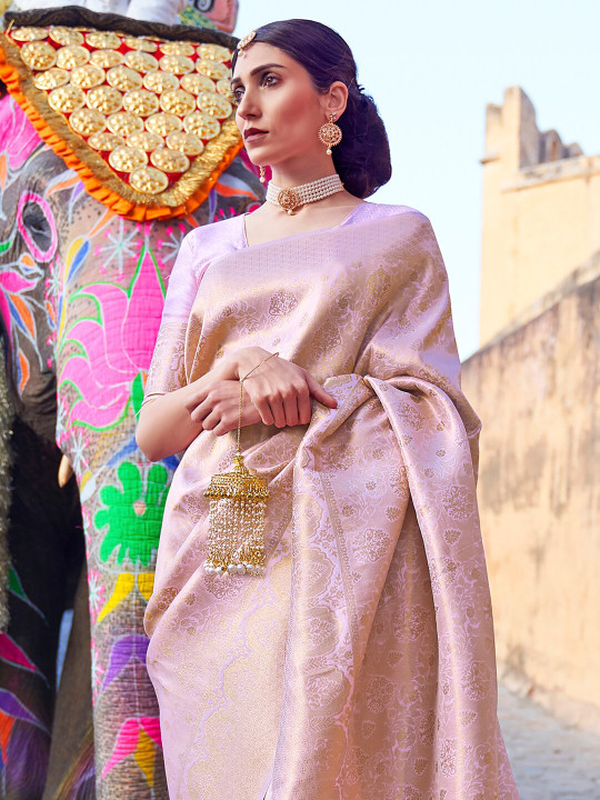 Lavender and gold-toned banarasi saree